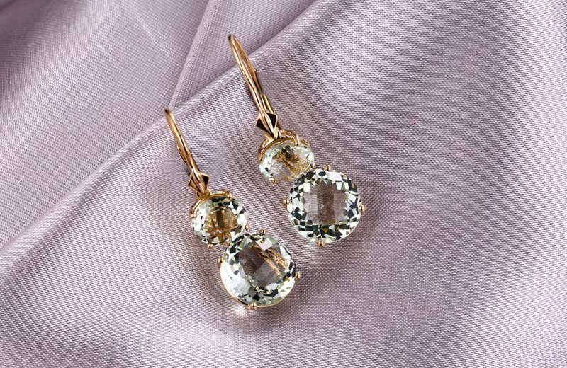 12.85 carat natural Amethyst. 18K Gold Earrings. Luxury packaging included. We can make a free customized 3D drawing based on this design and your wishes. Please contact us below. Also if you require advice from our experts.